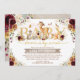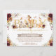 Floresta feminina, fresca e adorável convite para o chá de fraldas com a elegante cor d'água burgundy e flores laranja queimadas e adoráveis amigos da floresta: veados, coelhos, esquilo e um pássaro doce