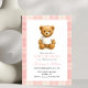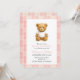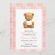 Convite Chá de fraldas de Xadrez rosa elegante do urso de