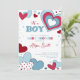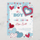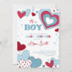 Namorados adorável convite para chás de fraldas com corações vermelho e azul.
