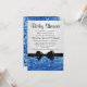 Arco de aspecto de Sparkle azul com aspecto brilhante em branco e um arco de fita preto. Um convite elegante e festivo para o chá de fraldas do menino com talento e moda.