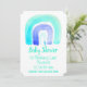 Um design de bonitinho de arte azul-arco-íris para simbolizar um menino para um convite para chá de fraldas. Tema de cor azul, aqua e branco. Simples e bonito.