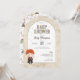 Celebre uma chegada mágica com este adorável convite do chá de fraldas Harry Potter com Ron Weasley. A design mostra uma ilustração fofa de Ron em suas túnica Hogwarts segurando sua varinha, cercada por sotaques coloridos de estrelas. O texto do convite é arranjado de forma artística com fontes divertidas e elegantes, personalizáveis com o nome, a data, a hora, o local, os detalhes de RSVP e o registro de presentes. Uma forma única e arquivada dá-lhe uma sensação de livro de histórias, enquanto o verso exibe um padrão delicioso de ícones mundiais que incluem caldeiros, poções, livros de ortografia e criaturas mágicas. Perfeito para qualquer fã de Harry Potter, este convite define a cena para uma celebração encantadora.