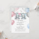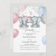Este adorável convite para chás de fraldas apresenta dois bebezinhos azuis e cinzas, rosas e cinzas, elefantes filhotes com balões e confete. A parte traseira apresenta aquarela azul macia. Facilmente personalizado para seu evento clicando em "Personalizar".