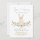 Convite para Chás de fraldas Bunny Alguns Bunny estão no caminho Convite Blue Floral Primavera Rabbit Convite para Páscoa