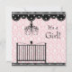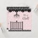 Damasco rosa adorável com berço preto e elegante candelabro rosa e bolinhas preto úmido com convites para chuveiros de bebês. Adicione os seus detalhes à frente e/ou atrás simplesmente adicionando os detalhes do evento, estilo da fonte, tamanho da fonte e cor e texto.