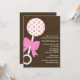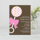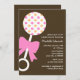 Convite do chá de fraldas do divertimento que caracteriza um chocalho brilhantemente colorido do bebê