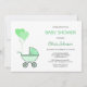 Convide seus amigos e entes queridos e comemore sua gravidez com este convite para o chá de fraldas, que apresenta um carrinho verde e balões em forma de coração para um convite neutro em termos de gênero.