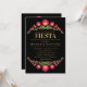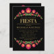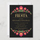 Um belo convite ao estilo floral fiesta para celebrar o bebê a caminho. Apresenta um design de flores de fiesta vermelha e uma inscrição dourada num fundo preto espantoso. Perfeito para um chá de fraldas temático mexicano. Fácil de personalizar selecionando o botão "Personalizar" para adicionar sua própria redação.
