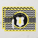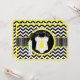 Impressão preto e branco da viga com acentos amarelos e uma ligação em ponte das bolinhas com um laço e um arco 3D-look amarelos e fita para um cartão do convite do chá de fraldas do menino.