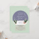 Convite para o Chá de fraldas do Snowglobe de inverno, com a cena de inverno moderna, azul e verde, com pinheiros e veados