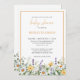 Flores silvestres, margaridas e folhas de lavanda em paleta de cor aquosa macia de marfim, lavanda, laranja verde e amarelo este romântico e elegante jardim elegante e romântico chamado convite de Chá de fraldas neutro. Este belo buquê e paleta colorida junto com um roteiro elegante de caligrafia que é perfeito para primavera, verão, jardim ou chás de fraldas ao ar livre.