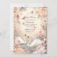 Um convite para chás de fraldas romântico que inclui dois cisnes graciosos num lago sonhador, rodeados por rosas de aquarelas moles, peonias e borboletas fluidificantes. Perfeito para celebrar a futura mãe com um tema eterno e elegante inspirado no lago Swan.