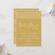 Quer você não consiga se reunir para uma festa devido a diretrizes de distanciamento social coronavírus, ou família e amigos distantes estão muito longe, este Chá de fraldas de vassoura de tendências pelo convite do Mail permitirá que os entes queridos celebrem seu novo bebê de qualquer lugar. A design apresenta um legal tecido de lama inspirado numa fronteira tribal com a tipografia moderna minimalista. Mostrado em um fundo amarelo de mostarda neutro em relação ao gênero ou use as ferramentas de design para personalizar em qualquer cor o bebê ou a menina. Adicione os detalhes do seu chá de fraldas virtual ou personalize para se adequar ao seu evento.