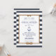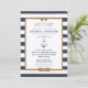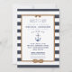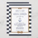 O convite para chá náutico "Ahoy, It's A Boy" da Boutique Co. náutica apresenta uma fronteira realista de cordas náuticas com nó e fundo de acabamento moderno de aquarela com listras náuticas tradicionais, azuis e brancas, de marinho. A tipografia inclui uma letra clássica em bloco que lembra os estilos náuticos aliados à tipografia moderna, escrita à mão. Ela combina estilos tradicionais e clássicos e design modernos. Uma âncora de aquarela correspondente conclui este convite náutico de chá de fraldas. #Náutico #BabyShower #ItABoy #BabyShower
