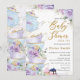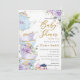 Personalize este convite para chá de fraldas de chic tea party com sua própria redação fácil e rapidamente, basta pressionar o botão personalizar para reorganizar e formatar o estilo e posicionamento do texto. Este convite elegante apresenta um bule de chá bonito, xícaras de chá, sobremesas esnopciosas, bela lavanda de aquarela, rosas púrpuras lilás e uma folhagem verde-fina e dourada. Itens correspondentes disponíveis no repositório! (c) O feliz Cat Studio.