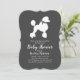 Jogue uma festa de poodle! Inclua o grande irmão ou irmã bebê pelado na comemoração com este adorável design de cão de vara! Perfeito para um amante de cachorrinho com um bebê a caminho. O poodle francês está ao lado de uma adorável carruagem de safra. A cinza de quadro-negro o torna perfeito para um chá neutro em termos de gênero ou em comum!