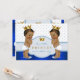 Belo convite para chás de fraldas gêmeos, azul real e príncipe dourado. Este elegante convite de chá de fraldas de príncipe americano gêmeo latino-americano africano, étnico hispânico latino-americano, é facilmente personalizado para o seu evento, simplesmente adicionando os seus detalhes no estilo de letra, cor e redação da sua escolha. Alguns trabalho de arte gráficos ©Delightful-Doodles.
