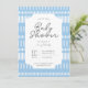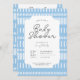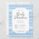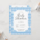 Convite de chá de fraldas geométrico numa paleta de cores azul e branca do céu duplo. ABORDAGEM: convite para chás de stripe, marcação eletrônica de tribo, convite de festas para bebês, cartão linear fofo, convite de festas neutro de gênero, apresentação simples para bebês, convite geométrico para bebês