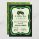 Encontrem seus convidados com este legal chá de fraldas temático do trator convidando com um trator de fazenda verde giro com tipografia moderna em um fundo de quadro. Basta adicionar os detalhes do seu evento neste modelo fácil de usar para torná-lo um convite de tipo único. Sacudir a carta para revelar uma bela textura de grama verde na parte de trás da carta.