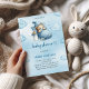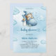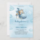 Celebre a chegada de um bebê com este adorável convite para chá de fraldas de ursinho azul! Apresentando um urso sonolento embrulhado num cobertor confortável, flutuando entre nuvens fofinhas com uma garrafa bebê ao lado, essa design é perfeita para um chá de fraldas doce e sonolento. O tema azul-pastel macio e os elementos do céu caprichoso o tornam ideal para acolher um pequeno em estilo. Adicione um toque de charme e de calor à sua celebração com este belo e animador convite.