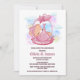 Convide seus amigos e entes queridos para o seu chá de fraldas com este convite chá de fraldas com um ursinho de pelúcia fofo dormindo em uma linga rosa enquanto flutuava no céu com balões.