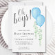 Este gêmeo casal no Convite para Chás de fraldas do garoto está decorado com balões azuis de cor d'água e eucalipto verde e diz "Oh Meninos!" Facilmente personalizável. Há espaço para adicionar mais informações na parte traseira do convite. Por favor, apague o texto se você não tiver informações para adicionar. Original Watercolor © Michele Davies.