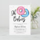 O convite de chá de fraldas deste gêmeo bonito apresenta rosquinhas de aquarela em rosa e azul. Facilmente personalizável com seus detalhes. Original Watercolor © Michele Davies.