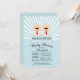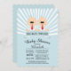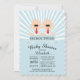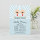 Um Chá de fraldas ousado e fofo do Oh Boy, chamado de um belo par de garotos vestindo fraldas e gravatas com bigode. Nosso convite para bigode, oh, garoto, é colocado em um fundo radial de faixa azul clara e branca vintage e tem um retorno correspondente para um toque especial extra. Perfeito para um chá de fraldas para gêmeos filhotes.