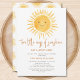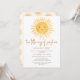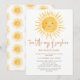 Você está planejando um chá de fraldas gêmeo com tema solar? Este convite de chá de fraldas de sol boho apresenta o texto "Dois pequenos raios de sol estão quase aqui!" com uma aquarela fofinha sorrindo o sol amarelo. As costas estão decoradas com um padrão solar. Perfeito para garotos gêmeos, meninas, ou um de cada chá de fraldas. Facilmente personalizável. Original Watercolor © Michele Davies.