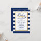 design náutica elegante e moderna com confete dourado falso e fundo marinho azul e listras brancas. Placas de convite de festas de Chá de fraldas / bebê aspersor. Unisex, sexo neutro, rapaz ou rapariga. Falso texto em folha de ouro e confete. Todo o texto pode ser editado com fonte e tamanho. Não se esqueça de combinar os adesivos e Traga um livro!