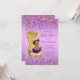 A princesa africana-americana convida a chá de fraldas com uma adorável menina étnica africana-americana vestindo um tutu roxo bonito e uma coroa de pérolas e diamante sentados em uma bela cadeira de ouro em um roxo lavanda rico e um fundo brilhante de confete de ouro. Este belo convite para chás de fraldas roxo e dourado é facilmente personalizado para o seu evento simplesmente adicionando os seus detalhes no estilo de fonte, cor e texto da sua escolha. Este é um design impresso sem brilho real, confete, joias, etc.