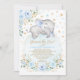 Convite Chá de fraldas Dourado Azul De Elefante Adorável P