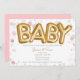 Convite Chá de fraldas Dourado Balões Modernos Cinza Rosa