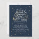 Um convite para o Chá de fraldas das Estrelas Pequenas e Bonitas Twinkle Twinkle, com um fundo azul-marinho de tendência, um arco-íris abstrato de ouro falso, uma dispersão de estrelas douradas e um modelo moderno que é fácil de personalizar.
