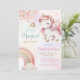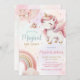Convite Chá de fraldas Dourado do Unicorn Rainbow Pink
