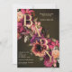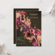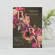 Detalhes florais cor-de-rosa-escuro sobre este convite para chás de fraldas de ouro moderno.