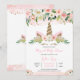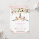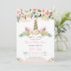 Convite Chá de fraldas Dourado Floral de Unicórnio Rosa