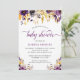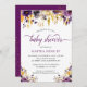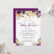 Dourada Glitter Purple Floral Modern Script Girl Convite Para Chá de fraldas.