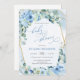 Convite Chá de fraldas Dourado Geométrico Azul Boho