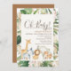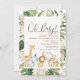 Folhagem Verde Dourada Palm Safari Convite Chá de fraldas Cute faux gold e green foliage safari temático chá de fraldas convite com quatro safari fofinhos e uma dica de folhas de palma de boho em tons naturais.