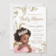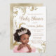 Chá de fraldas da princesa negra com uma doce menina vestindo um tutu rosa bonito e a joia tiara em um fundo de espiral de ouro bonito. Este convite para chá de fraldas da princesa negra é facilmente personalizado com os detalhes do evento. Você também pode alterar o plano de fundo e a cor do texto.
