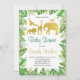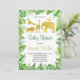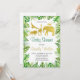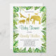 Convite moderno com palmeiras e silhuetas de ouro safari.