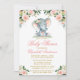 Watercolor Pink Blush White Floral Baby Elephant Invitation. Inclui lindas rosas cor-de-água rosa, flores brancas e verde botânico. Texto Dourado e rosa.