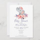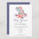 O Chá de fraldas Elefante Personalizado Convite de Ricaso ... com padrão de cor azul e branca detalhado ... um bonito design feminino animal, flor e bolinhas para a mãe ser - fácil de personalizar - disponível em diferentes opções de cor