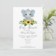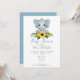 O Chá de fraldas Elefante Personalizado Convite de Ricaso ... com padrão de cor azul e branca detalhado ... um bonito design feminino animal, flor e bolinhas para a mãe ser - fácil de personalizar - disponível em diferentes opções de cor