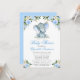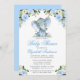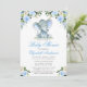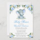 Convite Chá de fraldas Elefante Silver Floral Azul