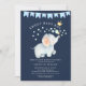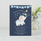 Adoráveis rapazes - Convite para chá de fraldas com um elefante giro soprando bolhas sobre um fundo azul escuro com uma coroa príncipe e faixa azul de bunting. Sacudir nosso convite fofo para ver uma coordenação de volta para um toque especial extra.