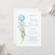 Convite Chá de fraldas Elegante Eucalyptus Balão Azul
