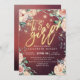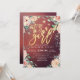 Modelos de Cartões de Convite para chás de fraldas - Roteiro de Folha Ouro Faux, Roses Brancas Florais de Pessegueira Elegante de Aquarelas e Luzes de Cordas no Plano de Fundo do Damasco Vermelho Borgonha. Todo Estilo De Texto, Cores, Tamanhos Podem Ser Modificados Para Ajustado Das Suas Necessidades.