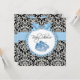 Elegante chá preto, bebê garoto-bebê. Este chá de fraldas azul e preto tem um doce par de calçados para bebês e arcos de diamante. Este elegante convite para chás de fraldas de damascos azul e preto para bebê é facilmente personalizado para o seu evento, adicionando detalhes do seu evento, estilo de fonte, tamanho de fonte e cor e texto.